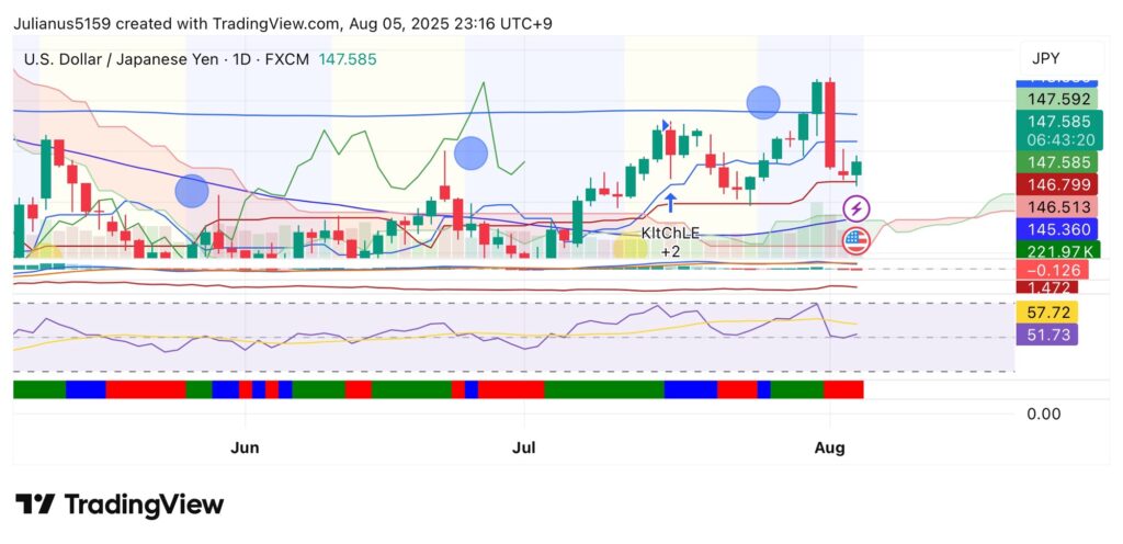ドル円(USD/JPY):約 147.9円(1ドルあたり、前日比上昇)